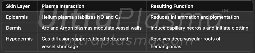 Hemangiomas—benign vascular tumors characterized by an abnormal proliferation of blood vessels—pose both aesthetic and medical challenges. Traditionally managed with laser therapy, corticosteroids, or surgical intervention, modern dermatology now embraces plasma medicine as a revolutionary alternative. UltraPlasma™ introduces a next-generation, multi-platform plasma system that integrates arc plasma, argon plasma, and helium plasma, controlled via proprietary software-hardware output spectrum modulation. This system targets the epidermal, dermal, and hypodermal vasculature, improving outcomes through precision oxidation and gas-mediated modulation.